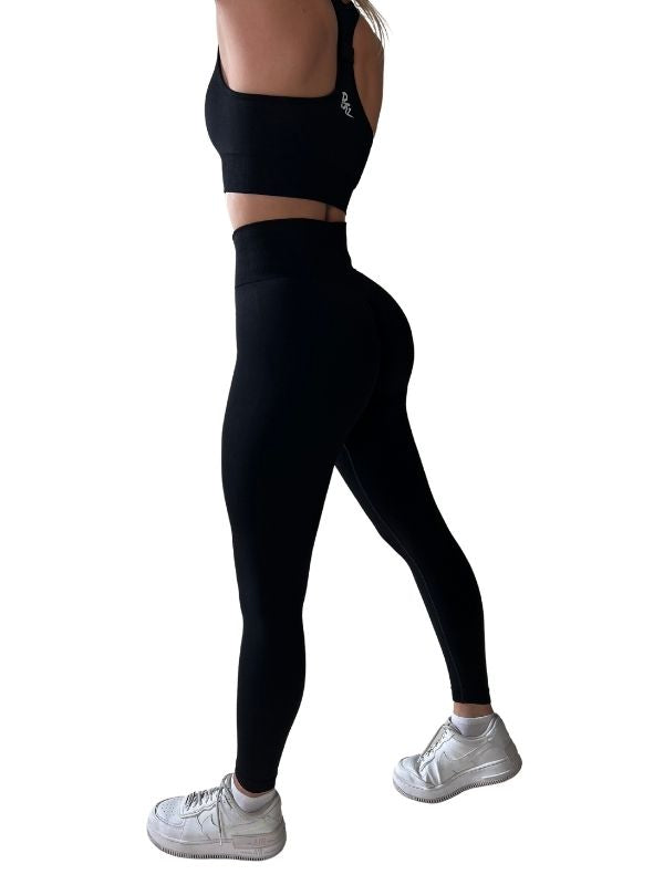 La coupe du legging met en valeur ta silhouette sans jamais la comprimer. Sa taille haute assure un maintien parfait et un effet ventre plat naturel. Les fessiers sont quant à eux sublimés grâce au combo Push Up + Scrunch nouvelle génération, pensé pour donner un galbe harmonieux et flatteur.