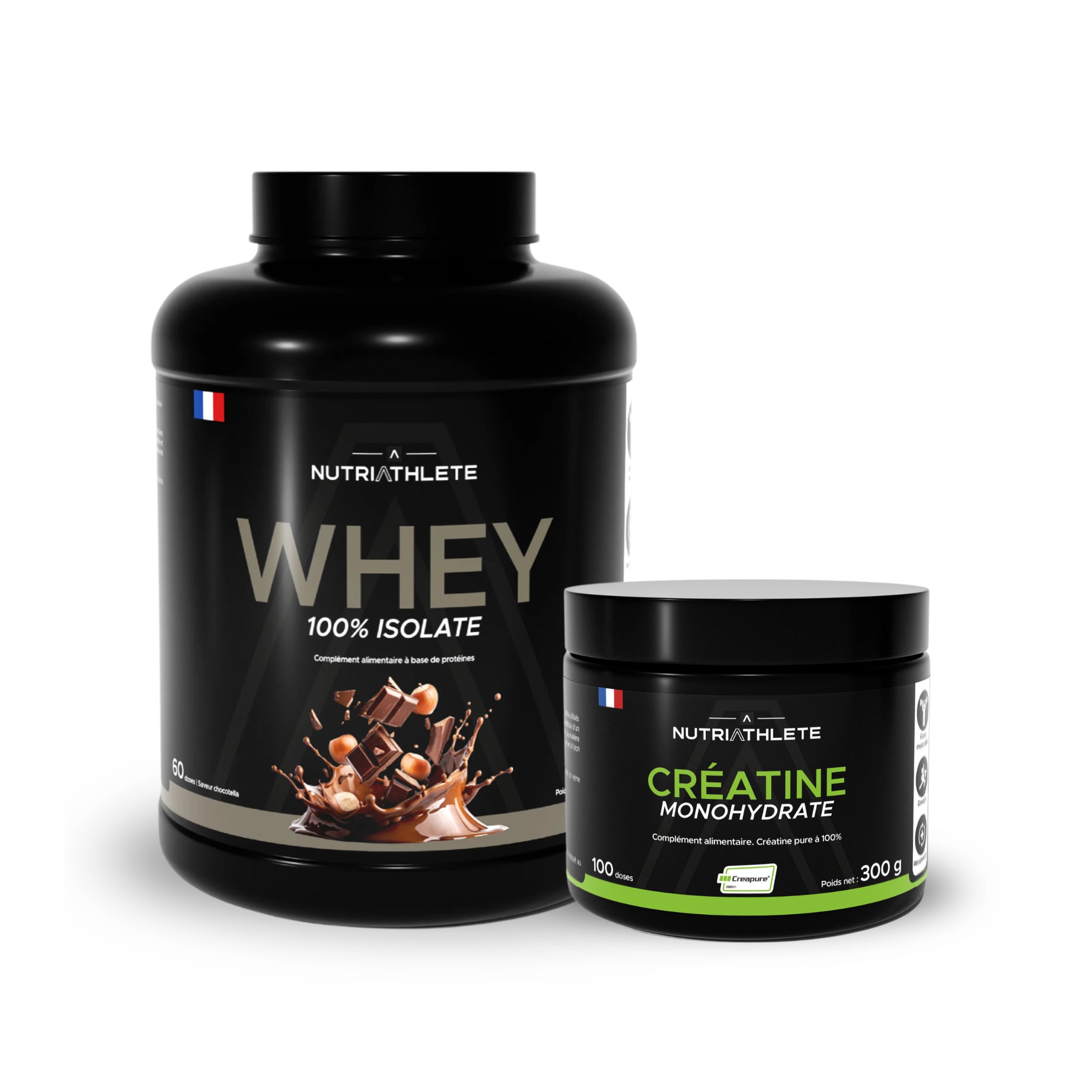 Le Pack Performance NutriAthlète réunit Whey et Créatine Créapure® pour accompagner tes entraînements les plus exigeants.
