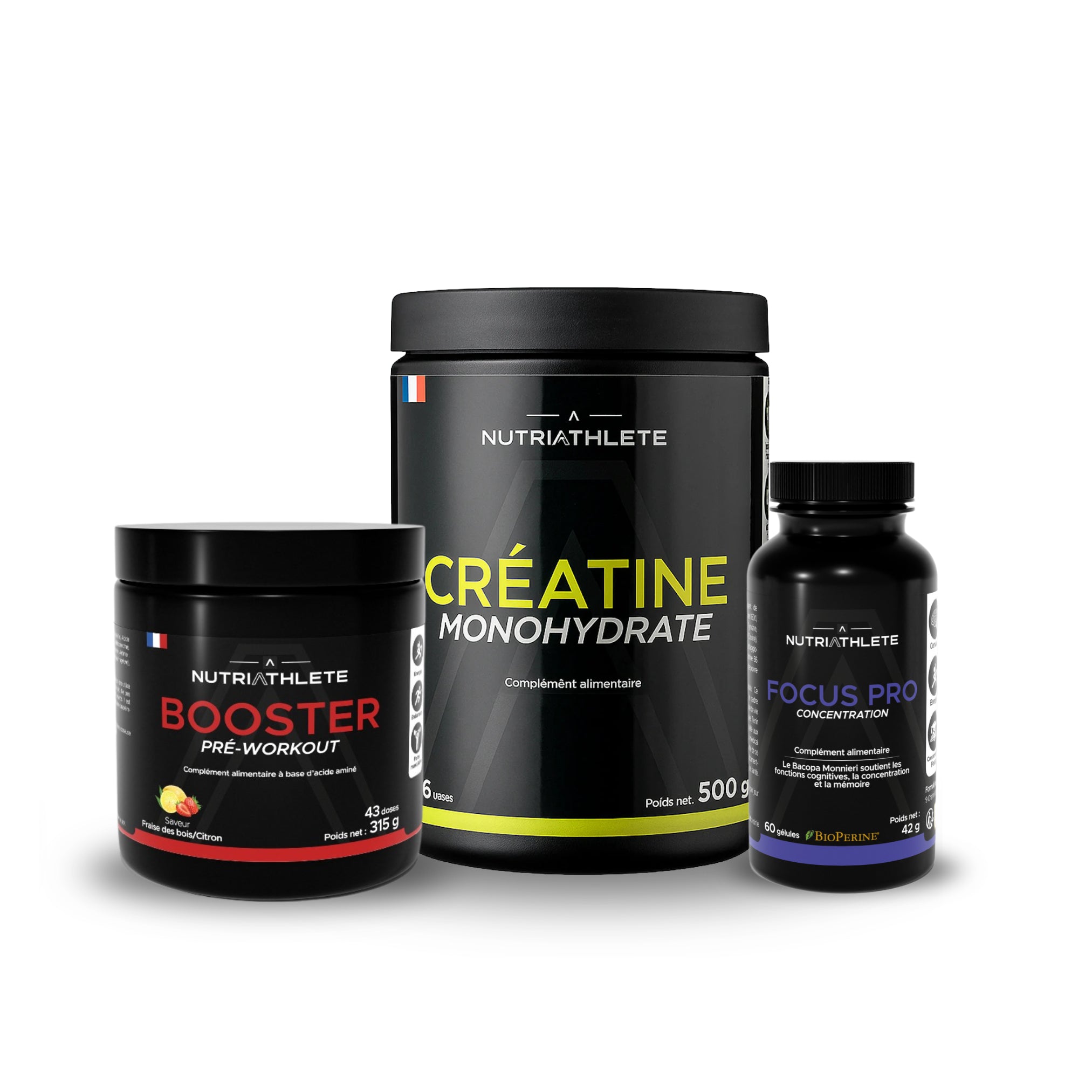 Le Pack "Performance" Nutriathlète combine la créatine, le booster pré-workout et le Focus Pro pour maximiser vos entraînements et votre concentration.